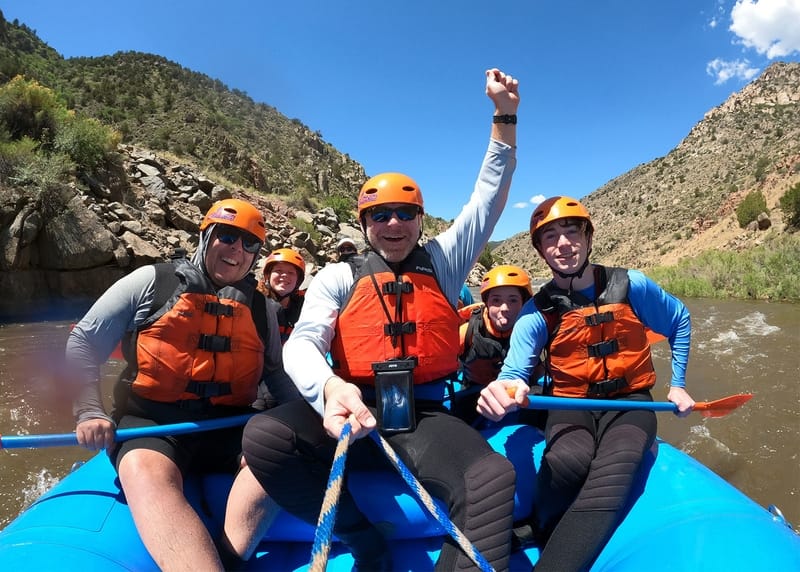 At Echo Canyon River Expeditions, our commitment to safety goes above and beyond. Our guides complete around five weeks of rigorous training—more than double the industry standard in Colorado. We carefully vet and prepare each guide to ensure they’re ready for anything on the river, especially when leading trips with kids and first-time rafters. (Bonus: they know how to keep the mood light with fun stories and plenty of dad jokes.)