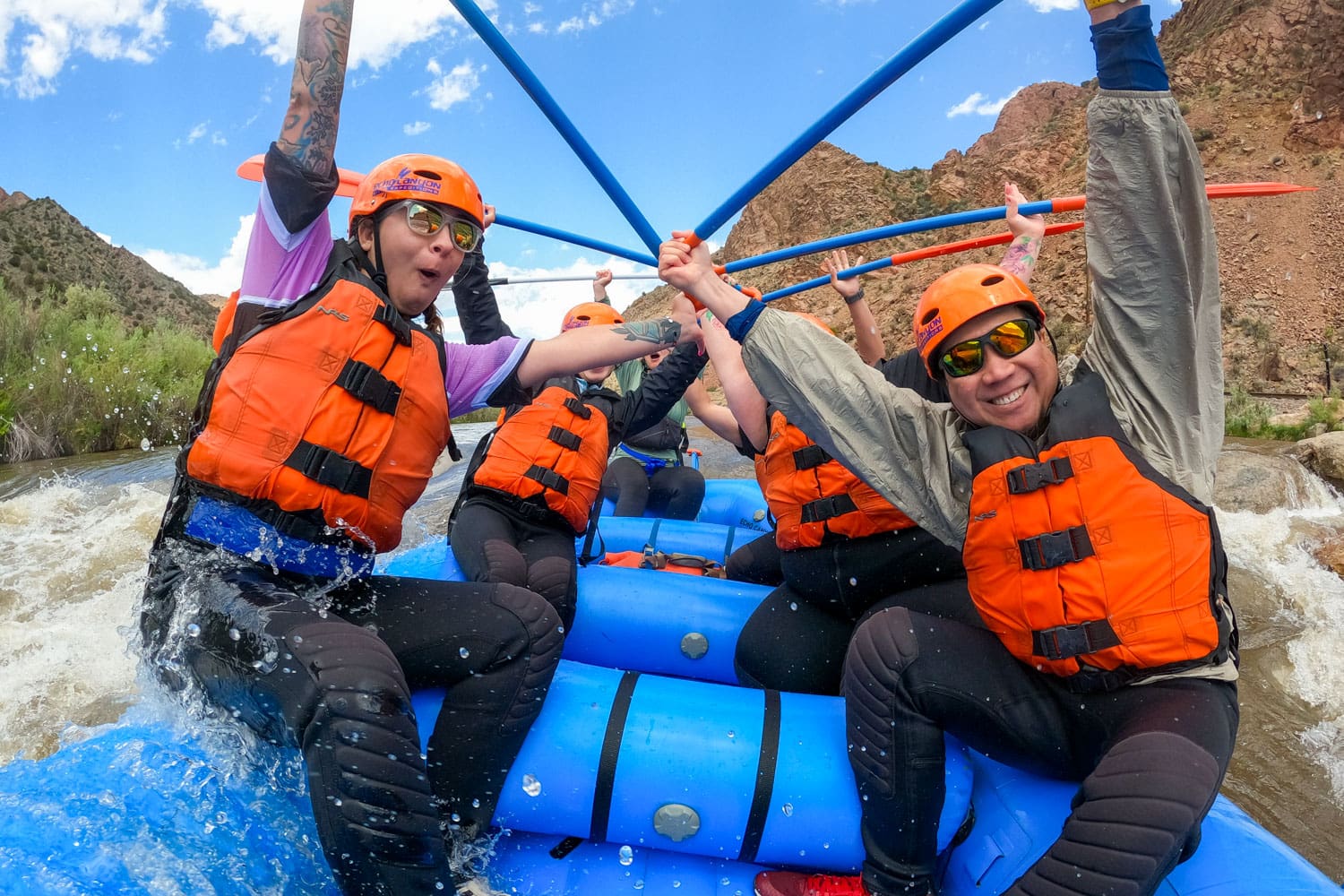 We also understand that teenagers are kids, too – especially in the eyes of their parents, so let’s address that topic! Our Royal Gorge full-day trip has a minimum age recommendation of about 13 years of age at most water flows. Please feel free to have them join in on the fun!